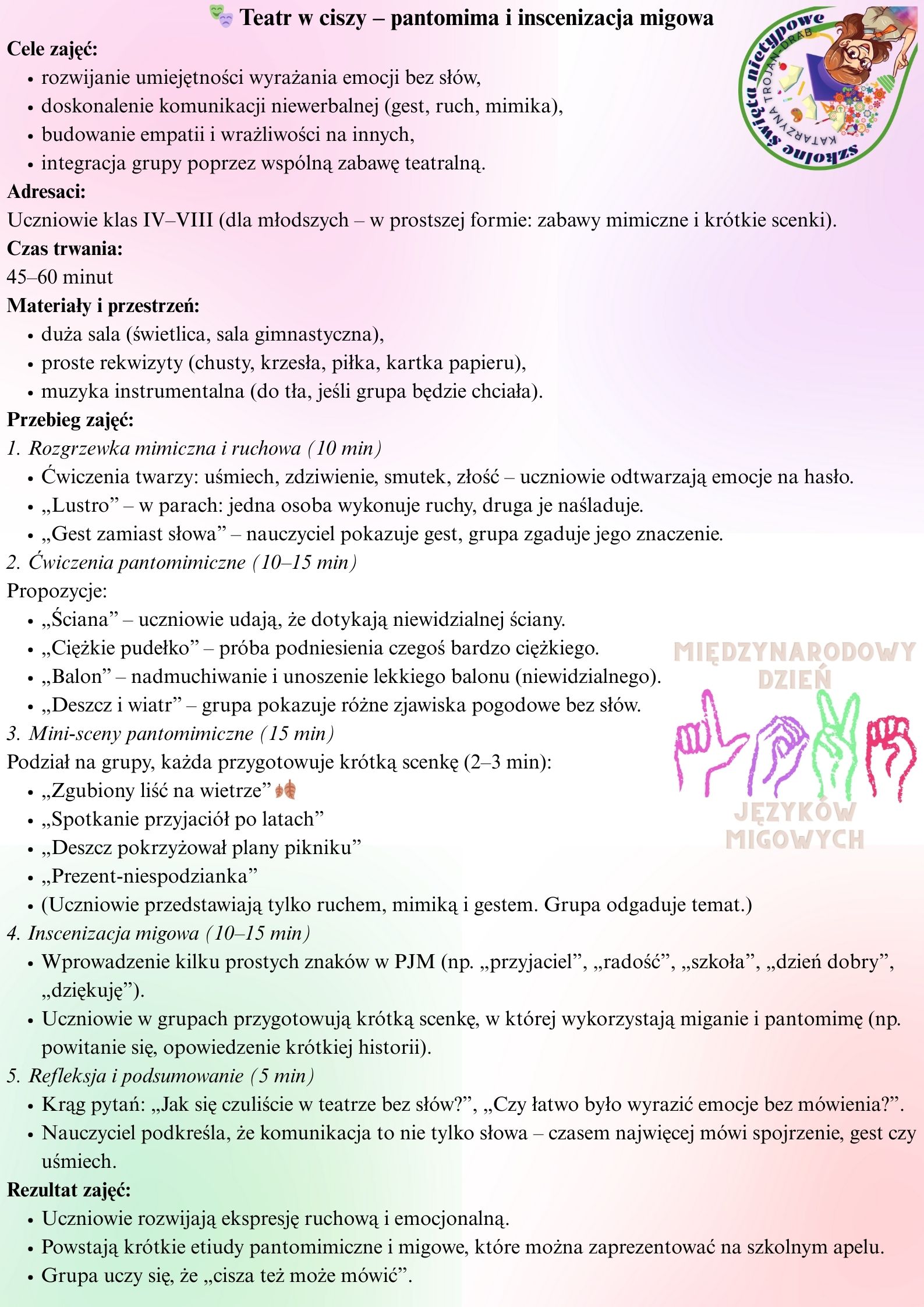 🎭 6. Teatr w ciszy – pantomima lub inscenizacja migowa
